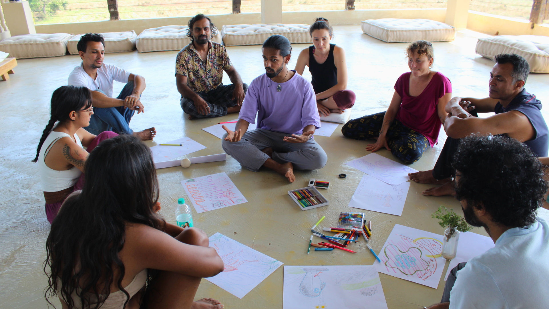 Workshops in movement, breathwork, ice-bath, theatre, voice opening or creative art therapy.